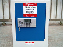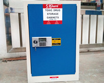 劇毒藥品柜帶電子密碼鎖+機(jī)械鎖,帶防盜報警功能,雙鎖兩人管理,開門時需兩人同時在場,符合易制毒化學(xué)品儲存管理要求。